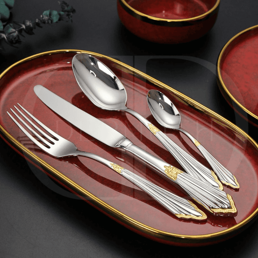 Conjunto de Talheres Luxo Dourado - Cabo Bordado